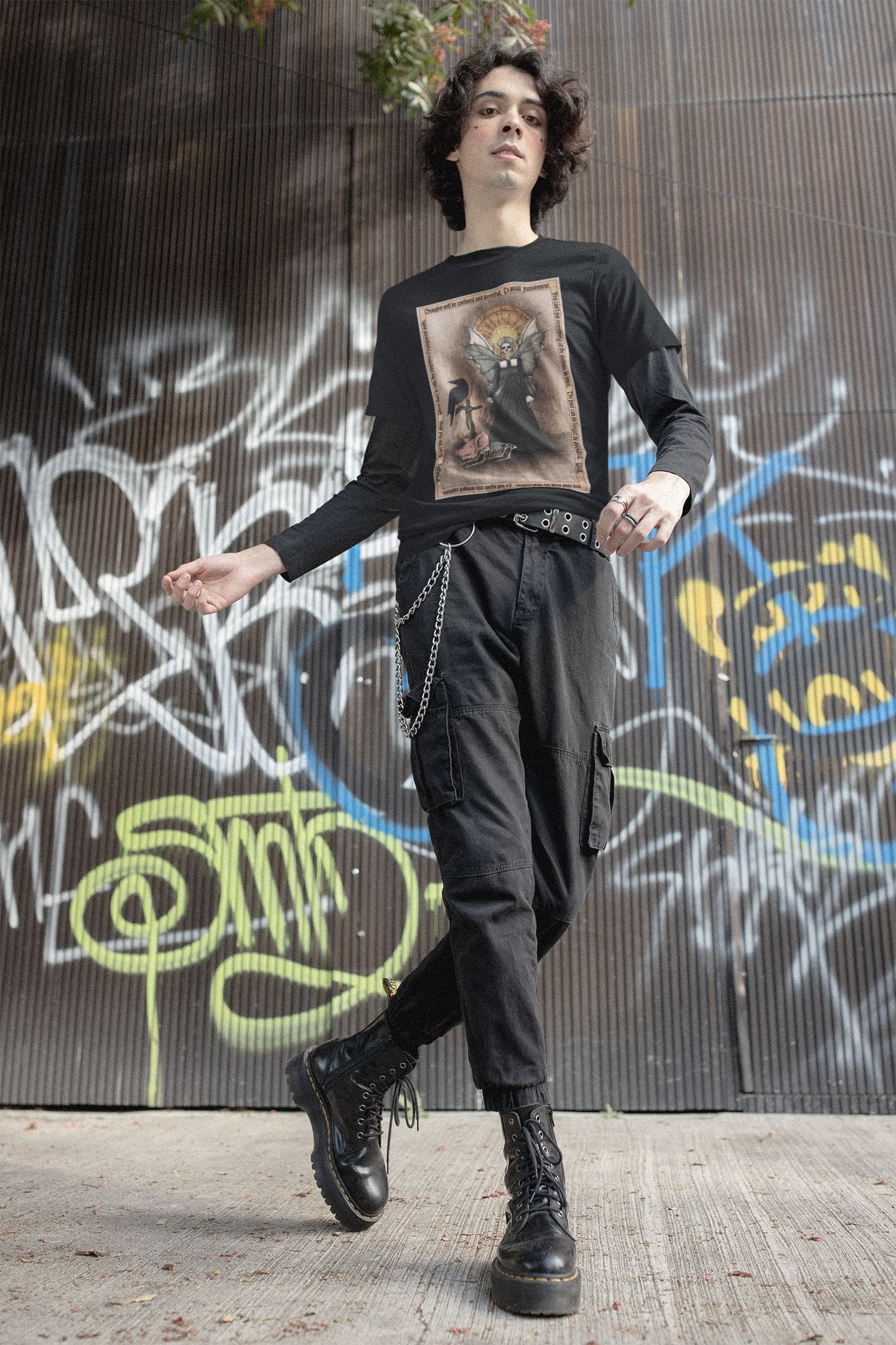 Mache dein Outfit zu einem Statement – mit diesem dunklen Gothic Streetwear T-Shirt.